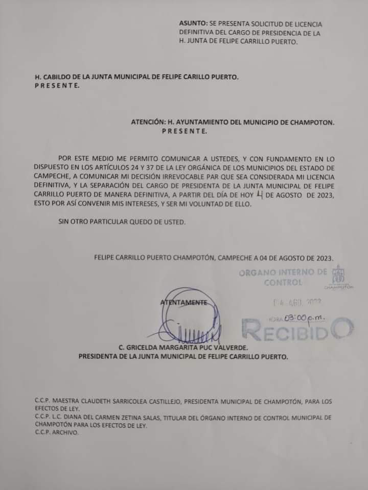 Cabe destacar que existe un documento en donde se presume que Puc Valverde dejo el cargo el pasado 4 de agosto, quedando acéfalo dicho puesto.
