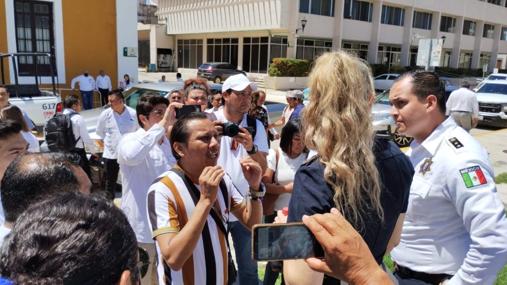 La titular de la Secretaria de Protección y Seguridad Ciudadana (SPSC), Marcela Muñoz Martínez ya se deponía a retirarse cuando fue abordada por un ciudadano carmelita.
