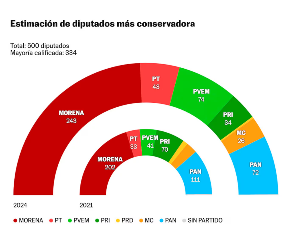 En este sentido, algo que se ve venir es la sobrerrepresentación de Morena,pues así como se dieron las cosas, sin duda obtendrá una proporción de escaños en el Congreso que exceda su proporción de votos a nivel nacional. Este fenómeno se ha observado en elecciones anteriores en México debido a la combinación del sistema de representación proporcional y el sistema de mayoría relativa.